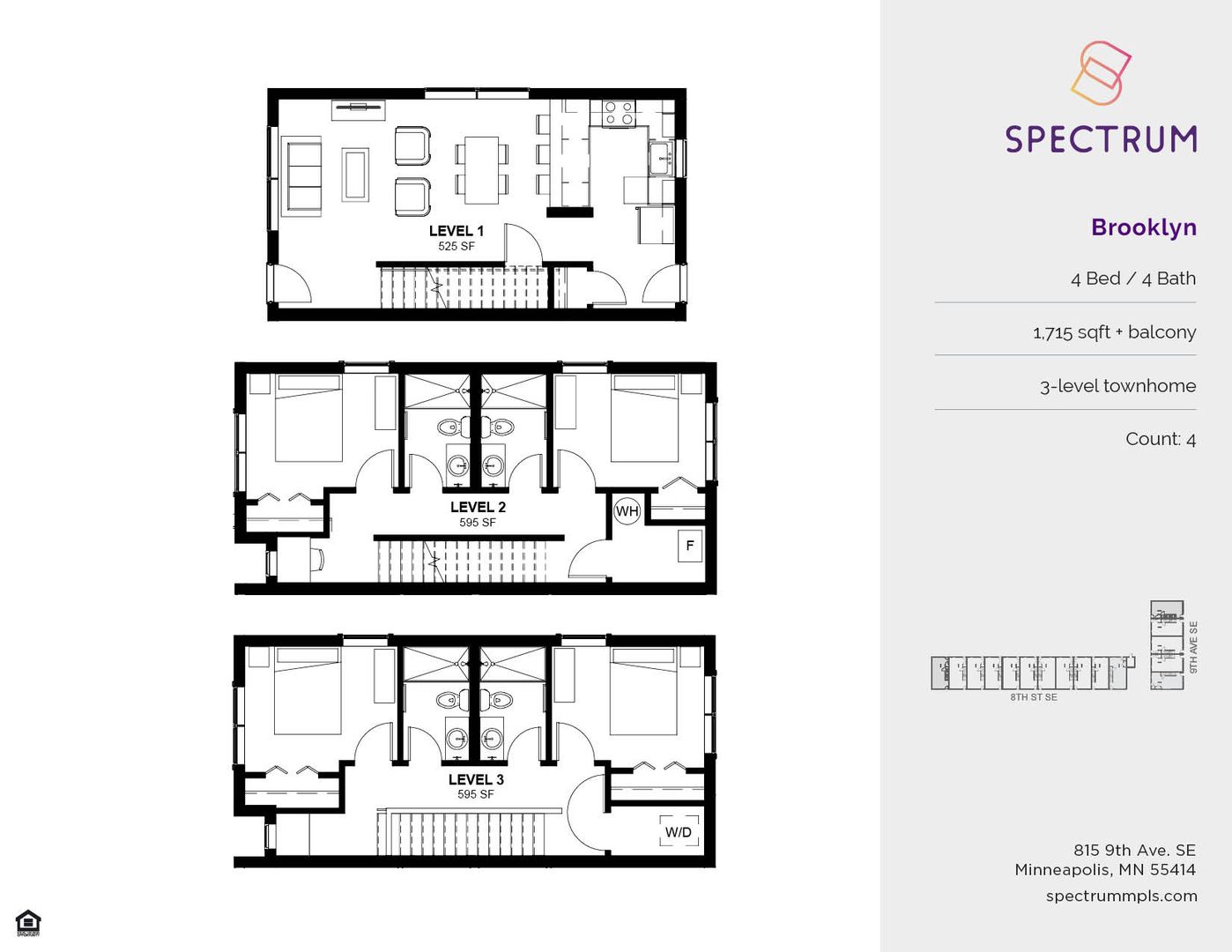 Our four-bedroom, four-bathroom townhomes offer a three-level living experience. Townhomes include in-unit laundry, direct fiber internet, upscale appliances, and granite countertops, built-in-desk, walk-outs, and they are fully furnished. These four-bedroom townhomes also feature solid flooring, spacious closets, expansive windows, modern bathrooms, convenient roller shades, and more.