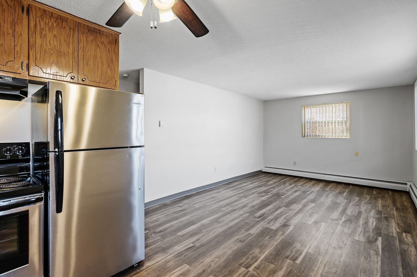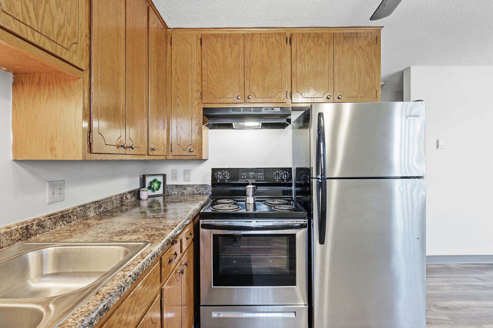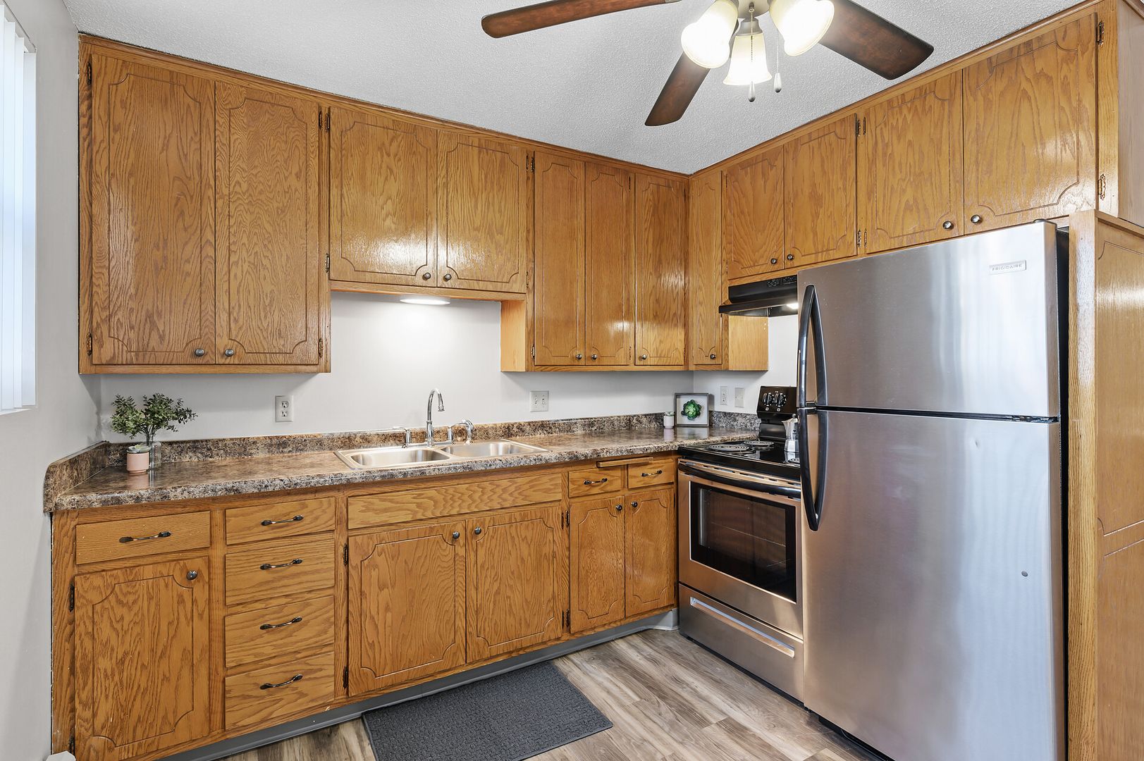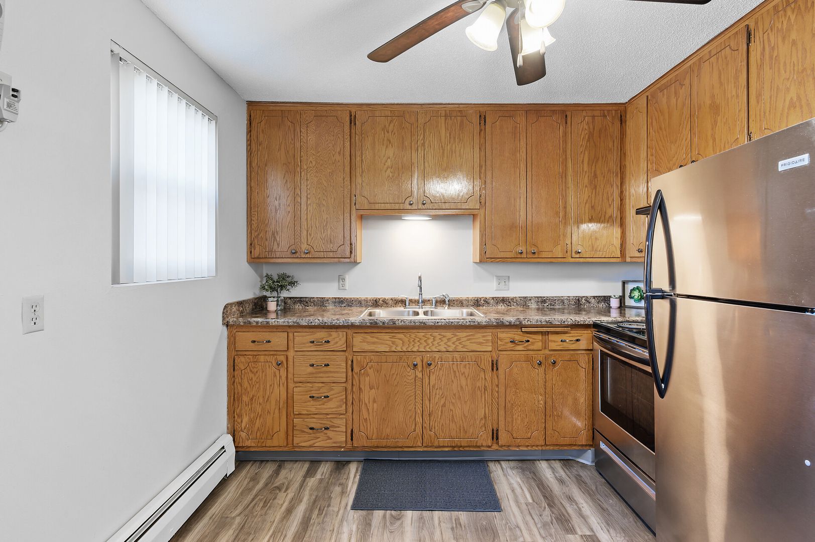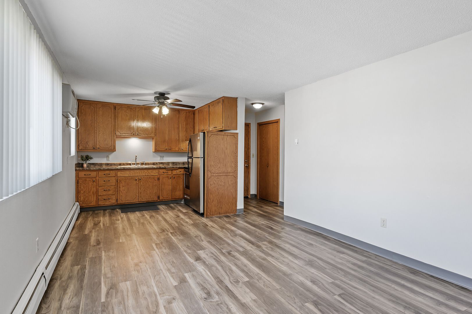 Updated 1st floor apartment with beautiful vinyl flooring. This corner unit features an updated kitchen, stainless steel appliances and a cozy layout. 2M is a quiet, well-kept community that offers a convenient location at the corner of Minnehaha Avenue and McKnight Road providing easy access to I-94 and public transportation.