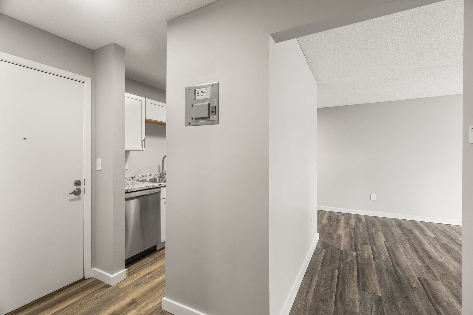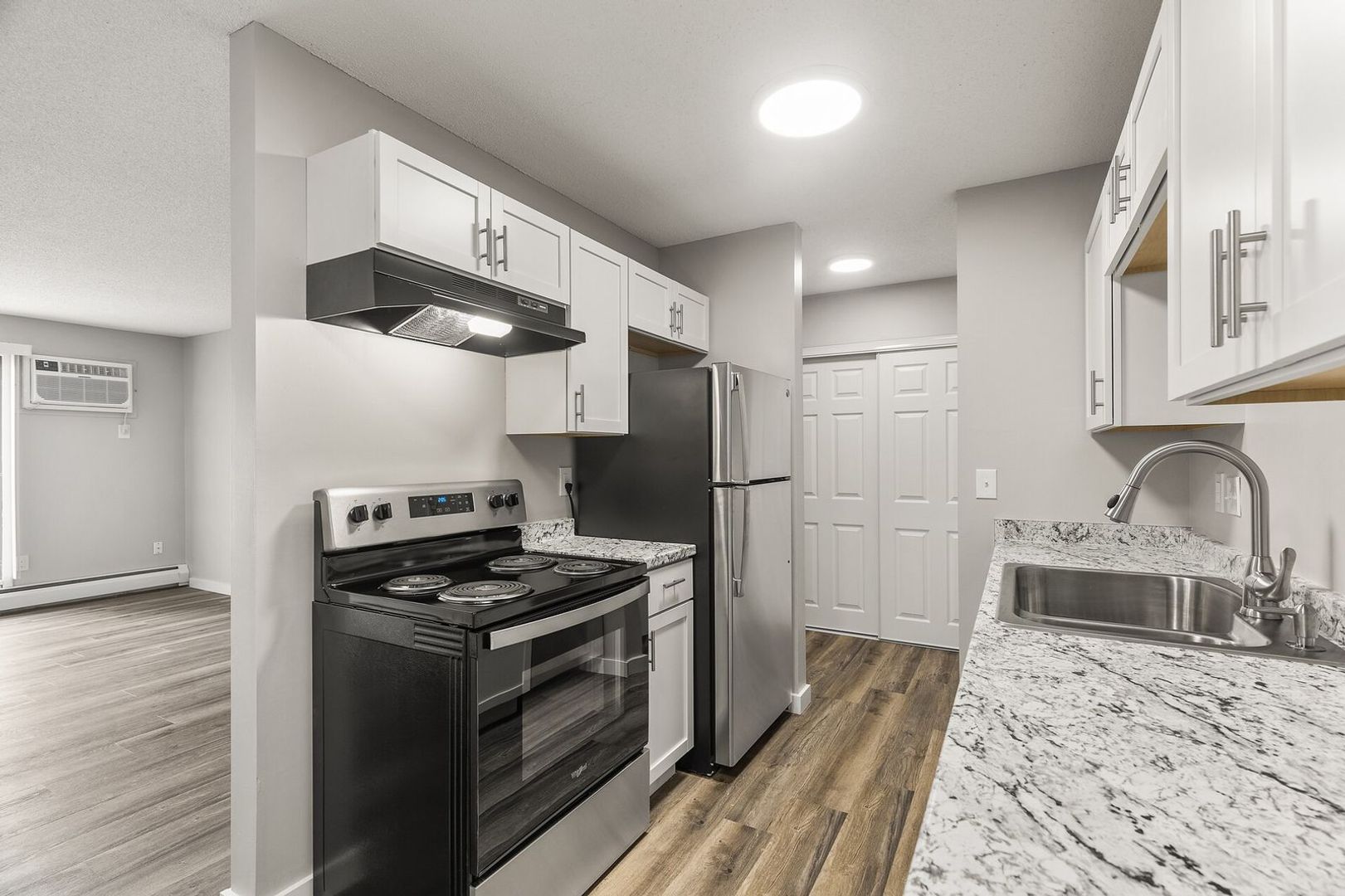 Fully renovated 2-bedroom, 1 bathroom home on 1st floor with large walk out patio. Home includes all white soft-closing cabinets and drawers, matching counter tops, bamboo like flooring, stainless steel appliances including a dishwasher, microwave above the stove, large pantry closet, and updated fixtures. Contact us today for more information on this apartment! 651-770-6029
